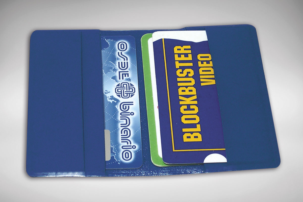 Realizada en PVC industrial con 2 sobres de cada lado de PVC industrial para tarjetas